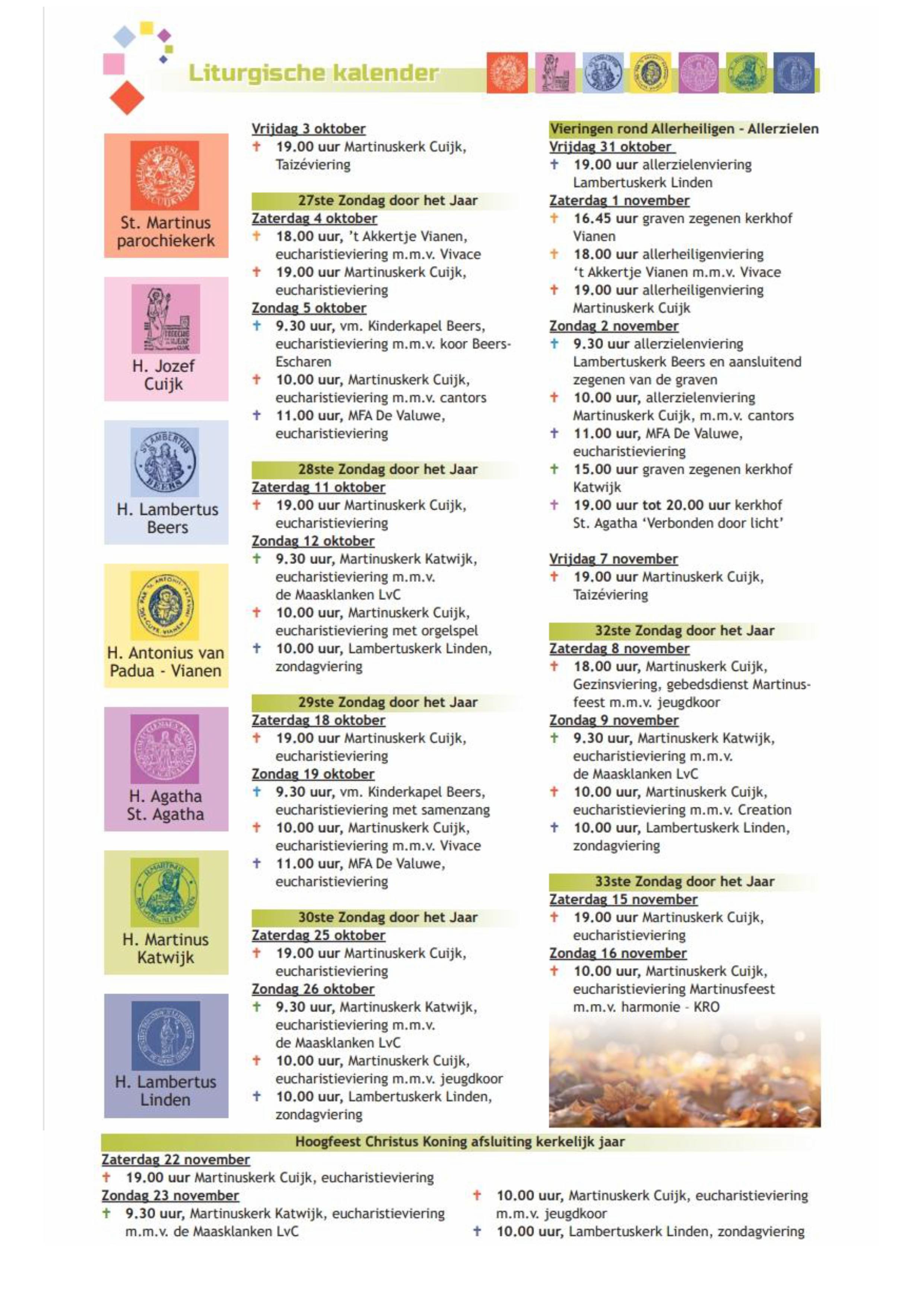 Vieringenrooster t/m november 2025